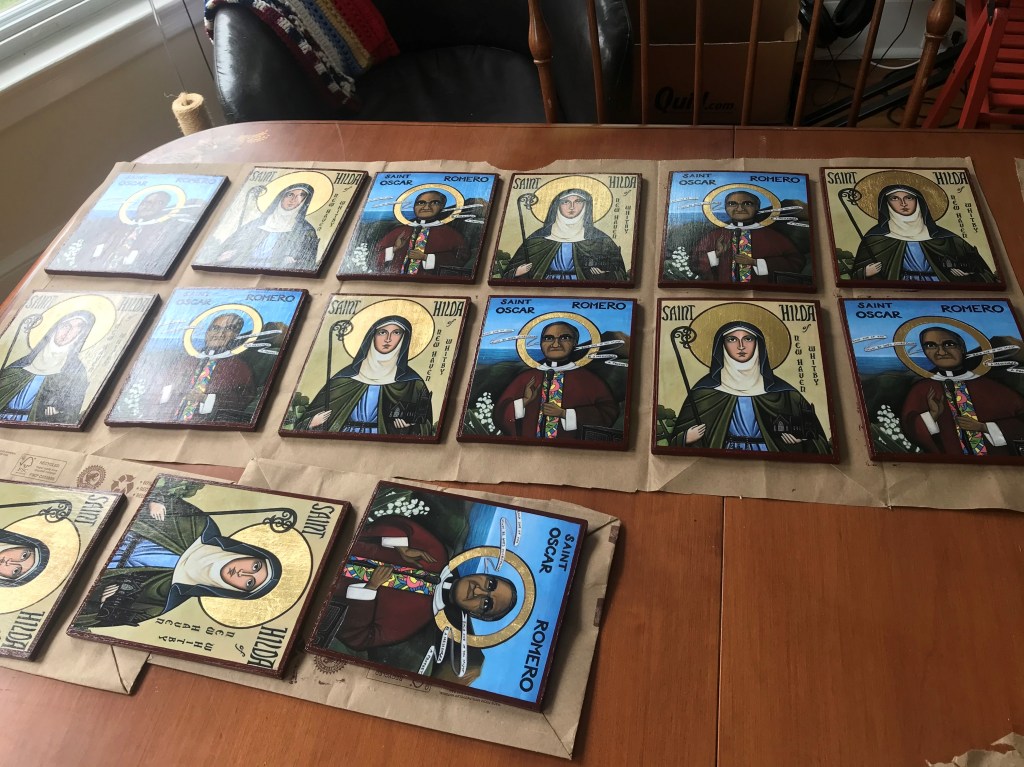 Currently Available: Oscar Romero Icon Mini’s (approx. 5.5″ x 6.75″). I can send them to you for the cost of materials & shipping (approx. $18). Note that these have some minor flaws due to damage from humidity, which I’ve fixed with paint to the best of my ability. Send me a message if you are interested in these!